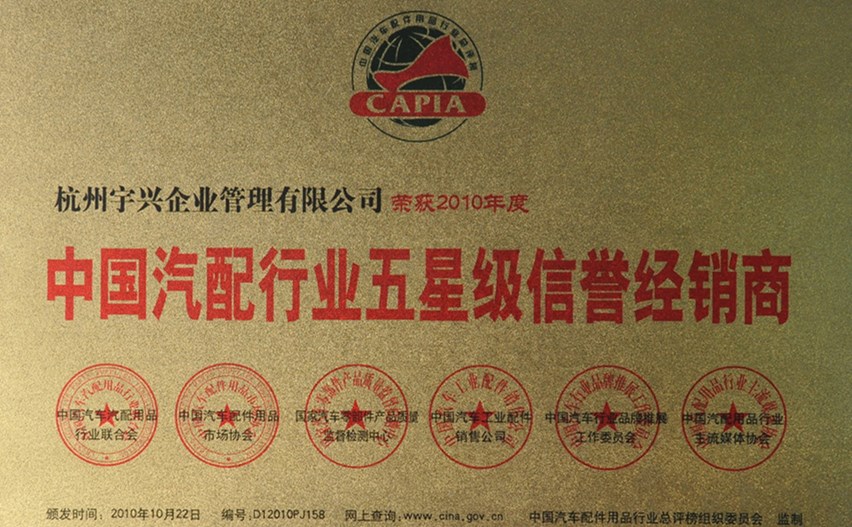 中國(guó)汽配行業(yè)五星級(jí)信譽(yù)經(jīng)銷商中國(guó)汽車汽配用品行業(yè)聯(lián)合會(huì)理事單位